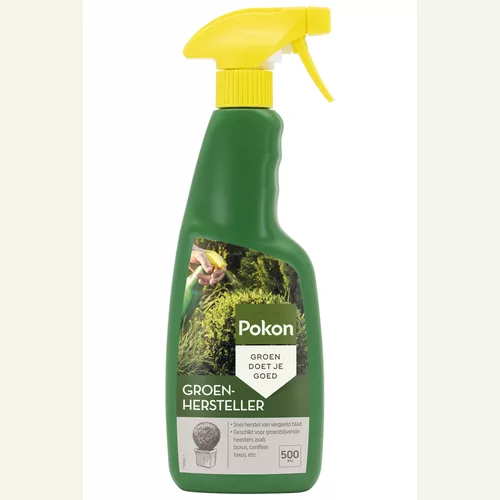 Door verschillende invloeden van buitenaf, zoals droogte, vorst en verplanten, kan het blad van jouw buxus geel/bruin verkleuren. Met Pokon Groenhersteller, in handige sprayflacon, wordt je buxus snel weer donkergroen. De uitgebalanceerde voeding met extra stikstof wordt door de verstuiver snel via het blad opgenomen. Vergeelde bladeren herstellen en worden snel weer groen. Pokon Groenhersteller is ook geschikt voor andere groene planten, zoals coniferen, taxus, skimmia en andere groenblijvende heesters.