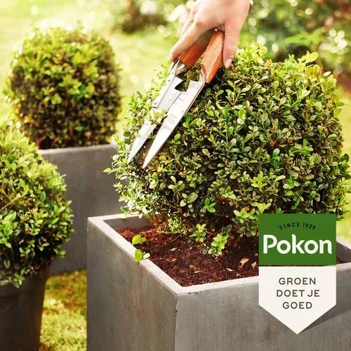 De toevoeging van Pokon Plantversterker in deze potgrond zorgt voor sterke wortels en verhoogt de weerstand van de buxus. Hierdoor worden planten beschermd tegen ziekteverwekkende schimmels en houden we gezonde planten, zodat er minder gewasbeschermingsmiddelen nodig zijn.