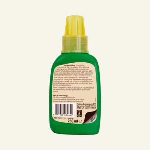 Wij bevelen aan om deze voeding vorstvrij en buiten bereik van kinderen en huisdieren te bewaren. Gebruik deze voeding niet voor planten op hydrocultuur.