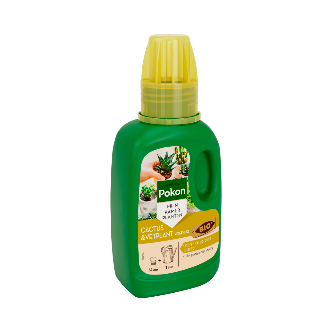 Geef je cactus of vetplant om de week wat extra's met Pokon Bio Cactus & Vetplant Voeding. Deze voeding is plantaardig en zorgt voor sterke en gezonde planten.
