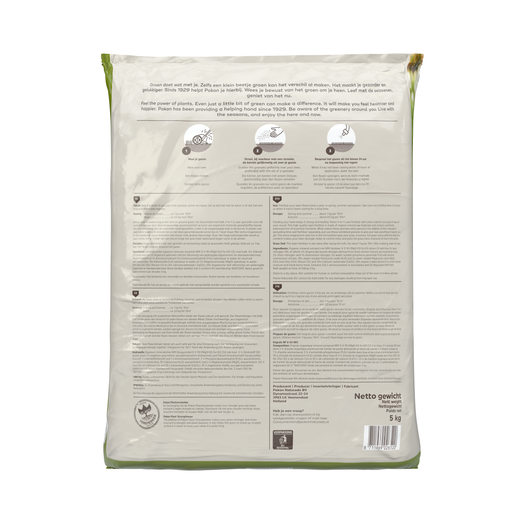 Wil je liever wel apart kalk en voeding strooien, bemest je gazon dan met Pokon Bio Gazonmest.