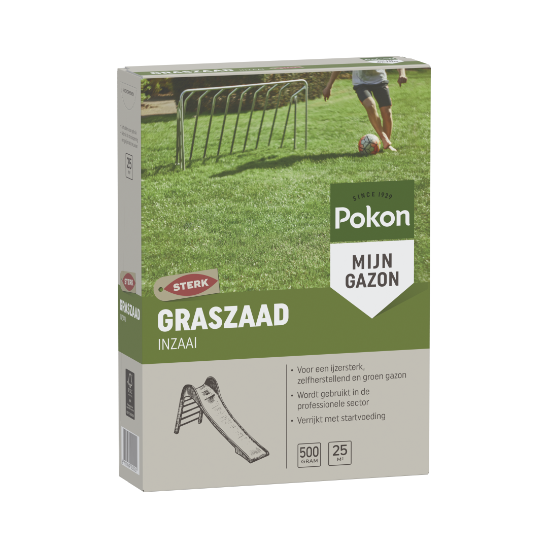 Pokon Graszaad Inzaai is geschikt voor het inzaaien van een nieuw gazon. Het graszaad is uniek vanwege het zelfherstellende vermogen; het creëert (horizontale) uitlopers door middel van RPR technologie. Hierdoor ontstaat een ijzersterk gazon. RPR wordt gebruikt in de professionele sector voor onder andere voetbalvelden en heeft een hoge betredingstolerantie. Graszaad Inzaai met RPR is uniek op de consumentenmarkt!