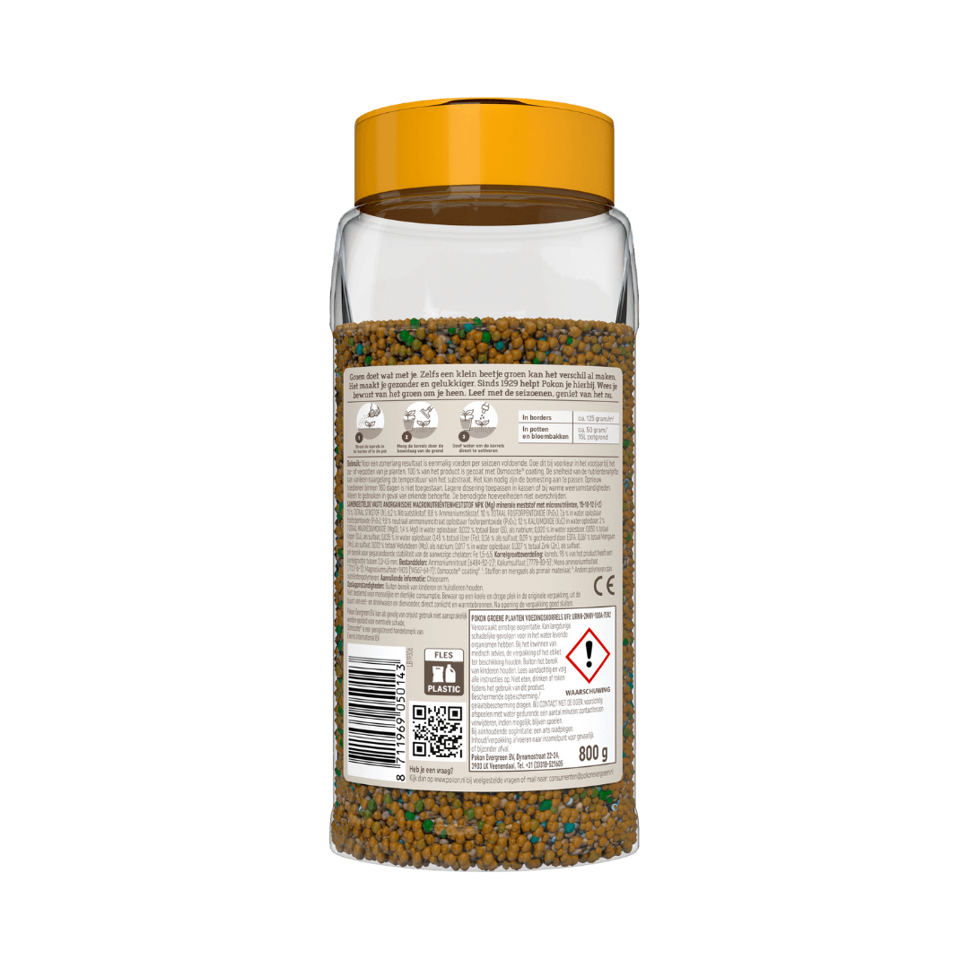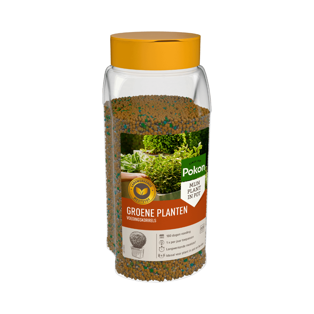 Pokon Groene Planten Voedingskorrels hebben een samengestelde meststof NPK 15-10-12 + 2MgO + Micronutriënten.