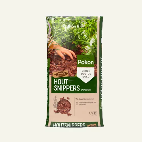 Pokon Houtsnippers Cacaobruin zijn een duurzame en decoratieve bodembedekker op basis van natuurlijk gekleurd hout. Deze hoogwaardige houtsnippers, afkomstig uit duurzaam (PEFC) beheerde bossen, vormen een natuurlijke laag over de grond. Dit helpt om onkruidgroei te beperken en zorgt voor een nette, verzorgde uitstraling in jouw tuin.