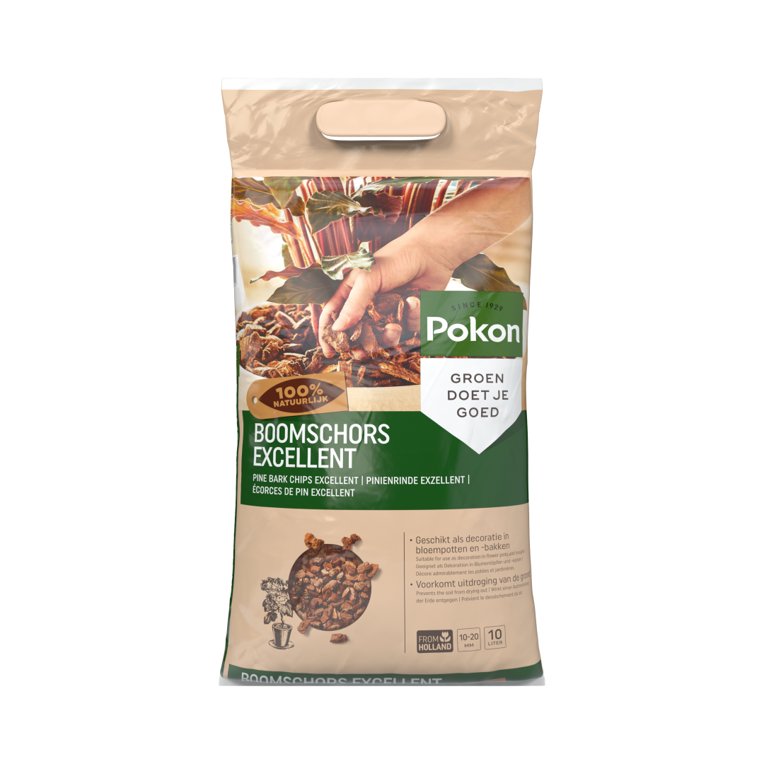 Pokon Houtsnippers Cacaobruin zijn een duurzame en decoratieve bodembedekker op basis van natuurlijk gekleurd hout. Deze hoogwaardige houtsnippers, afkomstig uit duurzaam (PEFC) beheerde bossen, vormen een natuurlijke laag over de grond. Dit helpt om onkruidgroei te beperken en zorgt voor een nette, verzorgde uitstraling in jouw tuin.