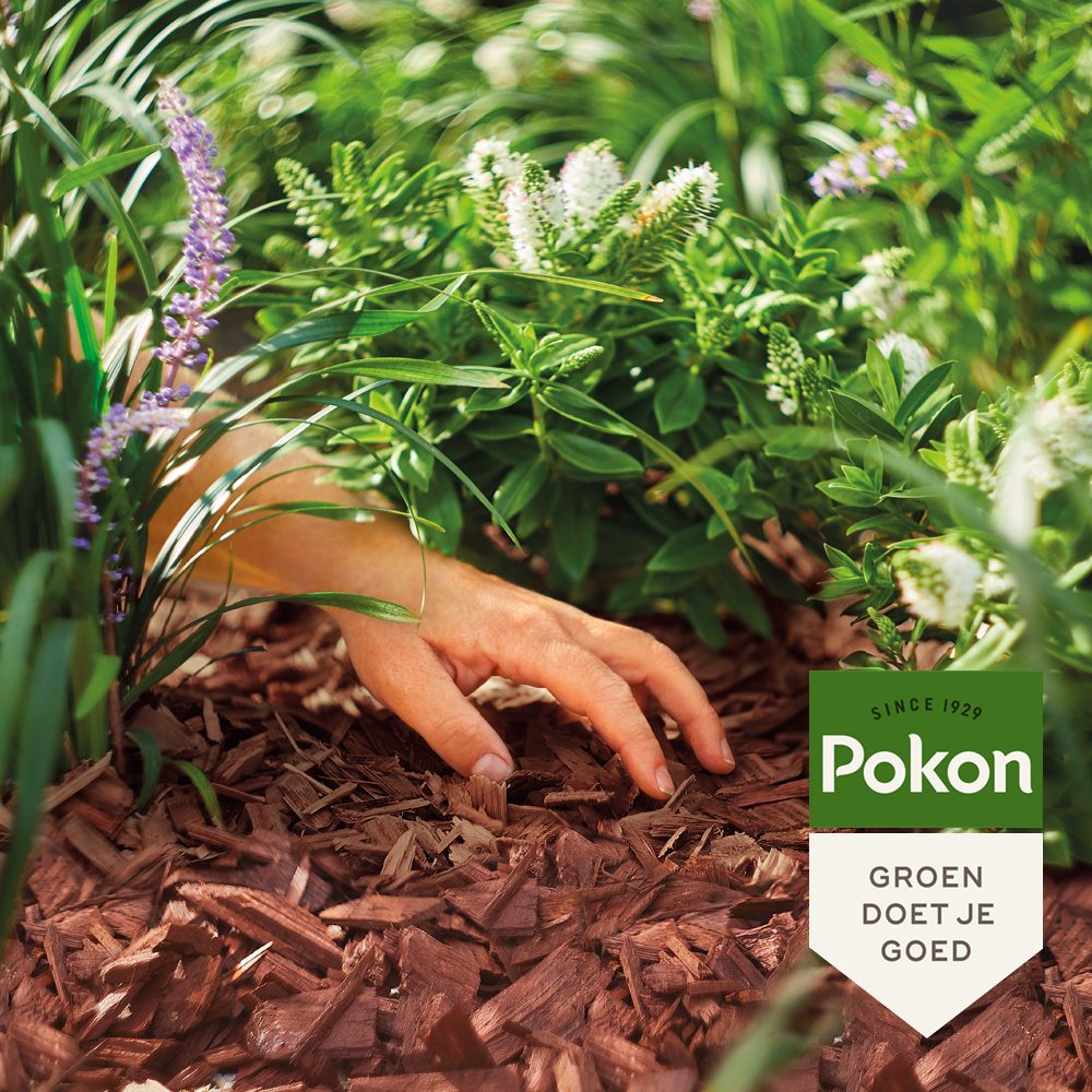 Pokon Houtsnippers Cacaobruin 45L is een natuurlijke bodembedekker van gekleurd hout, afkomstig uit duurzaam beheerde bossen. Een duurzaam en milieuvriendelijk product.