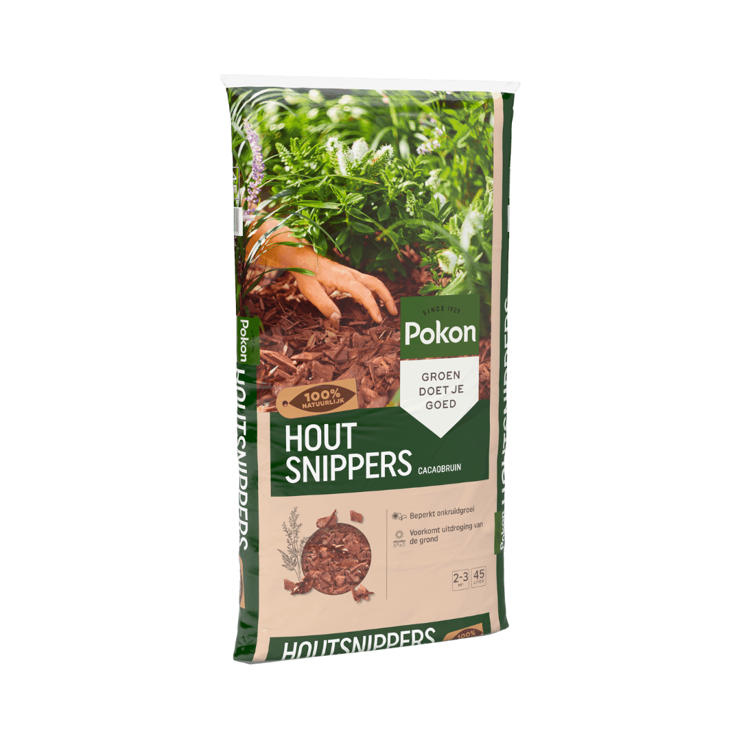 Pokon Houtsnippers Cacaobruin zijn een duurzame en decoratieve bodembedekker op basis van natuurlijk gekleurd hout. Deze hoogwaardige houtsnippers, afkomstig uit duurzaam beheerde bossen, vormen een natuurlijke laag over de grond. Dit helpt om onkruidgroei te beperken en zorgt voor een nette, verzorgde uitstraling in jouw tuin.