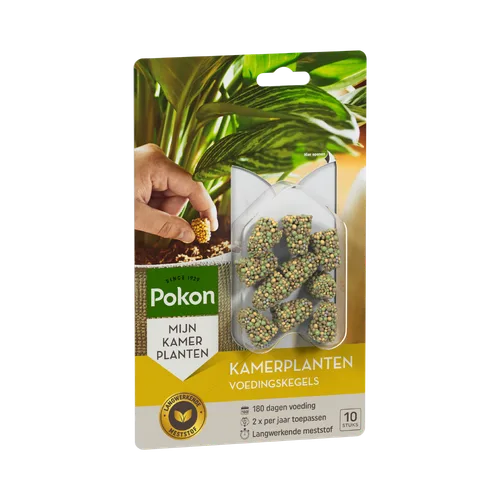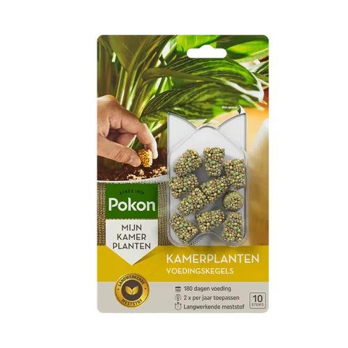 Geef je kamerplanten het hele jaar door de beste verzorging met Pokon Kamerplanten Voedingskegels! Deze slimme kegels geven geleidelijk voeding af, precies wanneer je planten het nodig hebben. Dankzij de speciale Osmocote® coating werken de kegels tot wel 180 dagen, onder invloed van vocht en temperatuur. Zo blijven je planten gezond, stevig en prachtig groen.