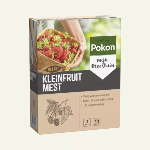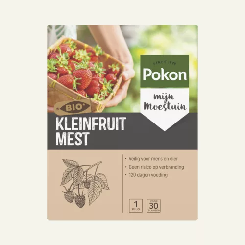 Pokon Bio Kleinfruit Mest is een biologische meststof die zorgt voor sterke kleinfruitplanten, zoals aardbeien, frambozen of bessen. Gezonde planten hebben meer weerstand tegen ziektes en plagen en geven heerlijk fruit. Geniet van smaakvol fruit uit eigen tuin met deze meststof van natuurlijke oorsprong.