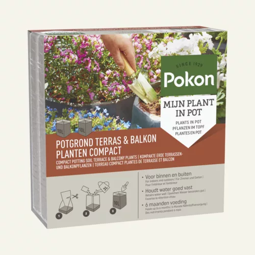 Fan van deze lichtgewicht potgrond? Bekijk dan ook de andere producten in deze compact serie: Pokon Kokos Potgrond Compact, een universele potgrond voor binnen en buiten en de Pokon Kamerplanten Kokos Potgrond Compact, speciaal voor kamerplanten.