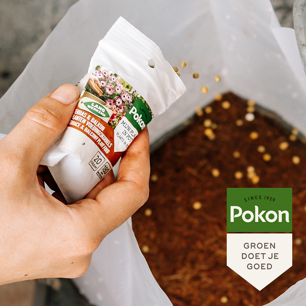 Een lichtgewicht terras & balkon planten potgrond, gemaakt van kokosvezel. Een zak weegt slechts 1/10 van een normale zak potgrond van 20 liter. Handzaam, neemt weinig voorraadruimte in én is turfvrij. Geschikt voor alle eenjarige zomerbloeiers.