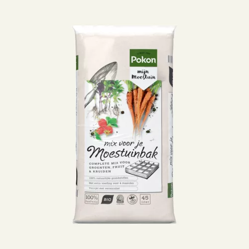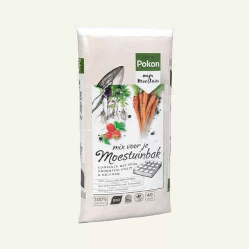 De biologische Pokon Mix voor je Moestuinbak is samengesteld uit natuurlijke en hoogwaardige grondstoffen, zoals vermiculiet, houtvezel, groencompost en biologisch gecertificeerde meststoffen. Deze uitgebalanceerde samenstelling zorgt voor een luchtige en vruchtbare voedingsbodem in moestuinbakken.