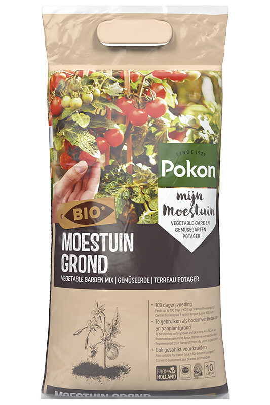 - Planten in potten en ook in de tuin hebben na verloop van tijd behoefte aan voeding omdat de in de grond aanwezige voedingsstoffen door de plant worden gebruikt. Pokon Bio Moestuin Grond bevat biologische voeding voor ca. 3 maanden. Daarna adviseren wij om planten regelmatig bij te voeden met een biologische plantenvoeding.