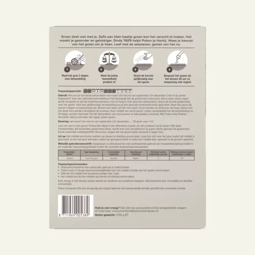 Bewaar dit product vorstvrij en buiten bereik van kinderen. Niet bestemd voor menselijke en dierlijke consumptie. Pokon Evergreen B.V. kan als gevolg van onjuist gebruik niet aansprakelijk worden gesteld voor eventuele schade. Gebruik gewasbeschermingsmiddelen veilig. Lees vóór gebruik eerst het etiket en de productinformatie.