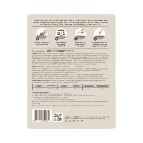 Last van mos in het gazon? Door mos verstikt het gras en het gras wordt verdrongen. Een effectieve manier om dit op te lossen is het gebruik van Pokon Mos Weg! Met deze mosbestrijder, die bovendien gazonmest bevat, wordt mos snel verwijderd en je gazon direct gevoed. De gazonmest bevat essentiële voedingstoffen die ervoor zorgen dat het gazon beter bestand is tegen mos.