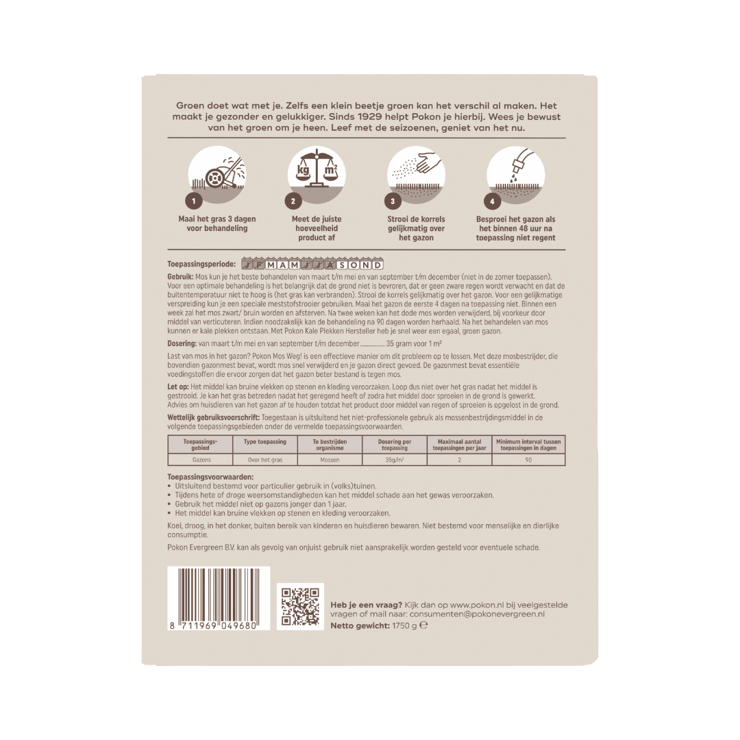 Last van mos in het gazon? Door mos verstikt het gras en het gras wordt verdrongen. Een effectieve manier om dit op te lossen is het gebruik van Pokon Mos Weg! Met deze mosbestrijder, die bovendien gazonmest bevat, wordt mos snel verwijderd en je gazon direct gevoed. De gazonmest bevat essentiële voedingstoffen die ervoor zorgen dat het gazon beter bestand is tegen mos.