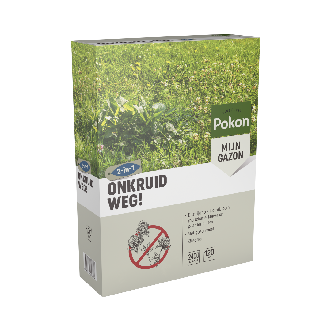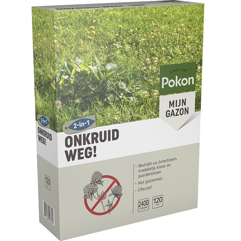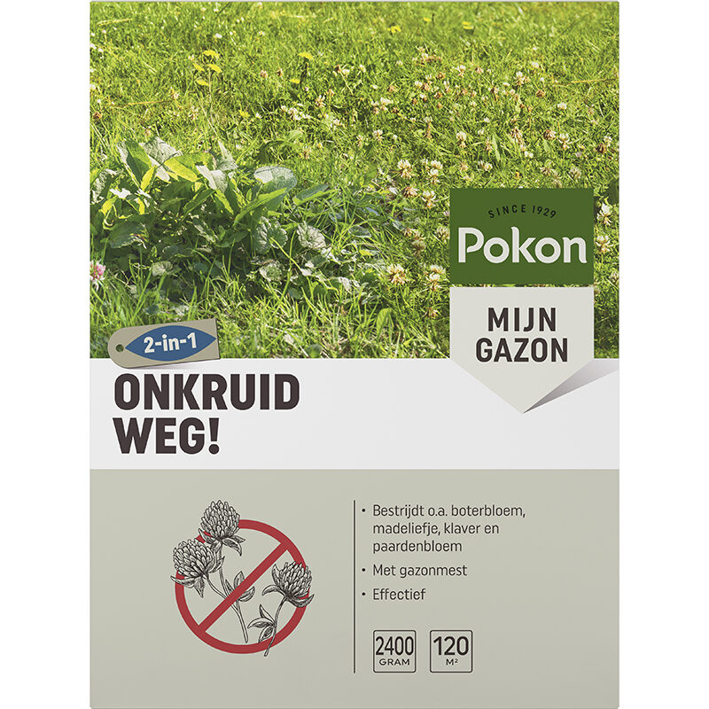 Last van onkruid in het gazon? Met Pokon Onkruid Weg! heb je op een eenvoudige en effectieve manier weer een mooi gazon. Deze gazonmest met onkruidbestrijder bevat extra voeding voor een goed herstel van het gazon en is een effectief middel tegen boterbloem, madeliefje, witte klaver en paardenbloem. Hoe snel het onkruid weg is erg afhankelijk van afhankelijk van het weer. Dit komt vooral door de invloed van de temperatuur en luchtvochtigheid op de snelheid waarmee het onkruid verdort. Meestal neemt dit 2 tot 3 weken in beslag.
