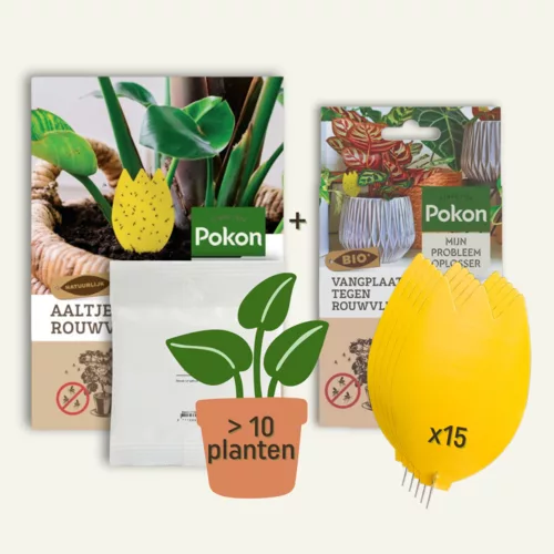 De levenscyclus van rouwvliegjes zijn kort. Hierdoor kunnen de insecten al snel uitgroeien tot een plaag. Voor een effectieve aanpak van rouwvliegjes zet je naast aaltjes ook vangplaatjes in. Pokon Bio Vangplaatjes Tegen Potgrondvliegjes bevatten 15 vangplaatjes die je in de potgrond steekt. Er zitten 5 metalen stekers in. Door de gele kleur worden rouwvliegjes aangetrokken en vang je de volwassen vliegjes. Hiermee wordt voorkomen dat zij eitjes in de potgrond leggen. Zo wordt de cyclus doorbroken waarna de potgrondvliegjes verdwijnen.
