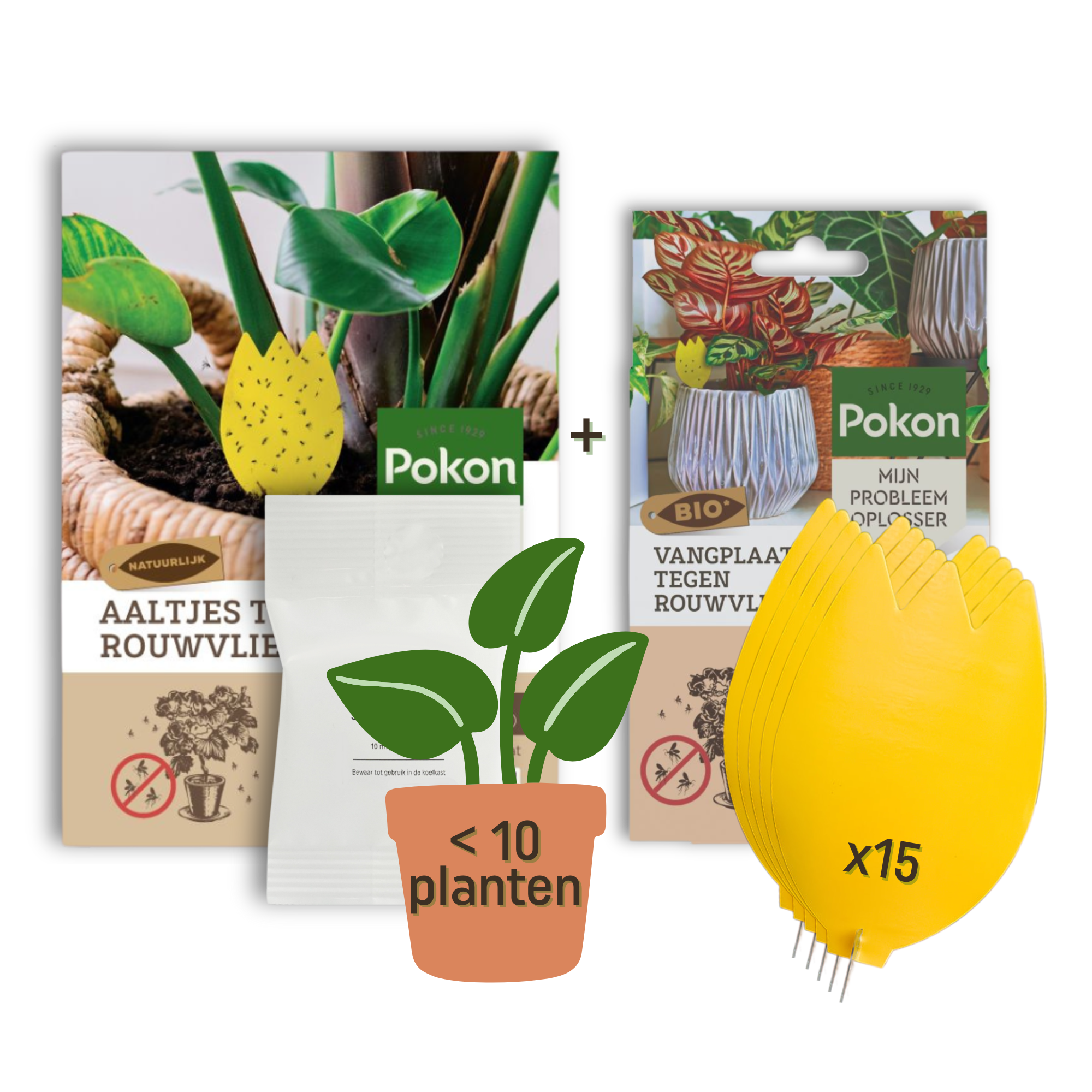 De levenscyclus van rouwvliegjes zijn kort. Hierdoor kunnen de insecten al snel uitgroeien tot een plaag. Voor een effectieve aanpak van rouwvliegjes zet je naast aaltjes ook vangplaatjes in. Pokon Bio Vangplaatjes Tegen Potgrondvliegjes bevatten 15 vangplaatjes die je in de potgrond steekt. Er zitten 5 metalen stekers in. Door de gele kleur worden rouwvliegjes aangetrokken en vang je de volwassen vliegjes. Hiermee wordt voorkomen dat zij eitjes in de potgrond leggen. Zo wordt de cyclus doorbroken waarna de potgrondvliegjes verdwijnen.