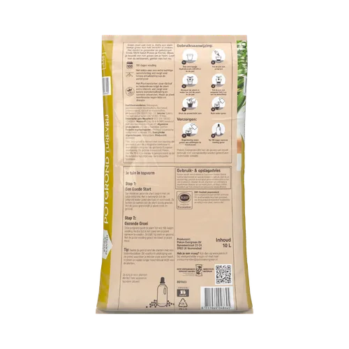 - Biologische meststof: De grond is bemest met Pokon Eko-Mix 10-4-4, geschikt voor biologische landbouw volgens Europese regelgeving.