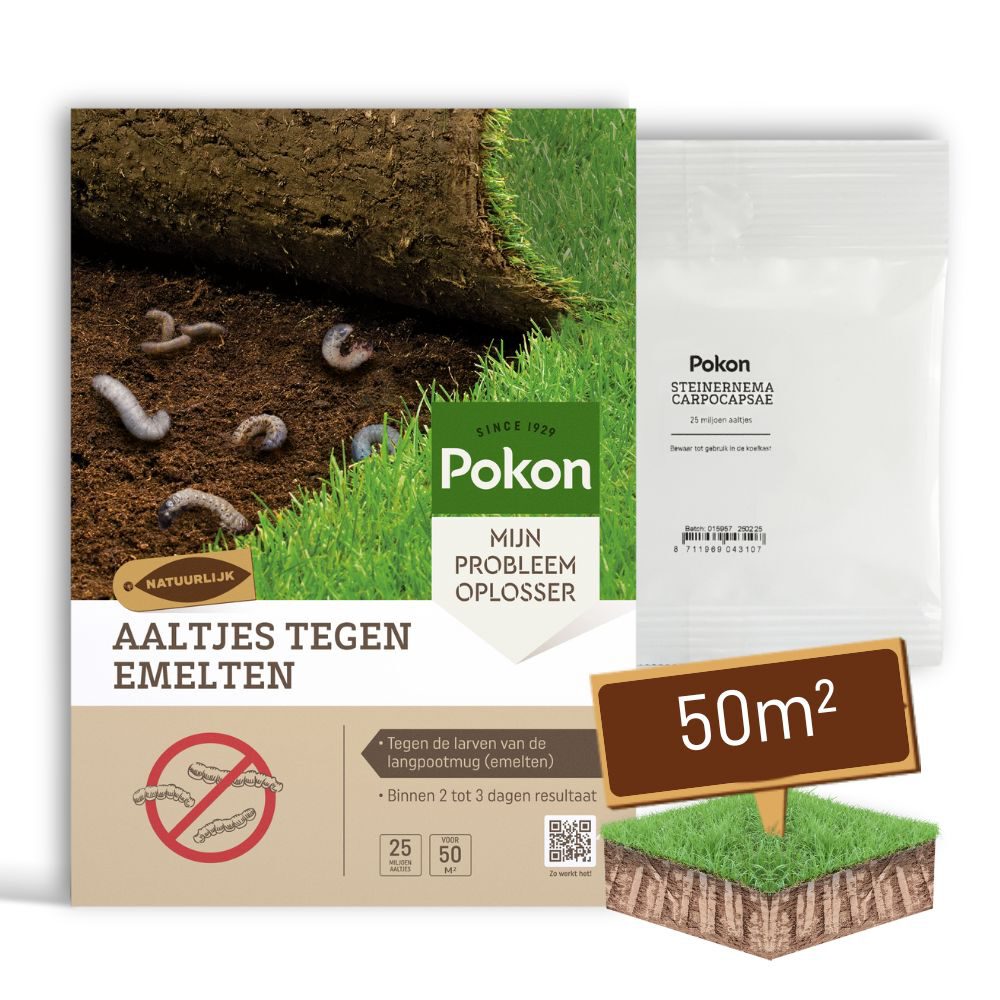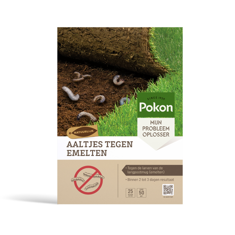 Heb jij last van kale en bruine plekken in jouw gazon en komen stukken gras los te liggen? Dan is de kans groot dat je last hebt van emelten. Emelten zijn donkergrijs van kleur en lijken op een mix van een rups en een worm. Emelten kunnen je gazon flink beschadigen. Zo eten ze zowel de wortels als het gras van jouw gazon op. Vogels zijn gek op emelten, waardoor ze het gazon vaak kapot trekken om bij deze lekkernij te komen. Met Pokon Aaltjes Tegen Emelten kan je deze larven bestrijden op een natuurlijke manier.