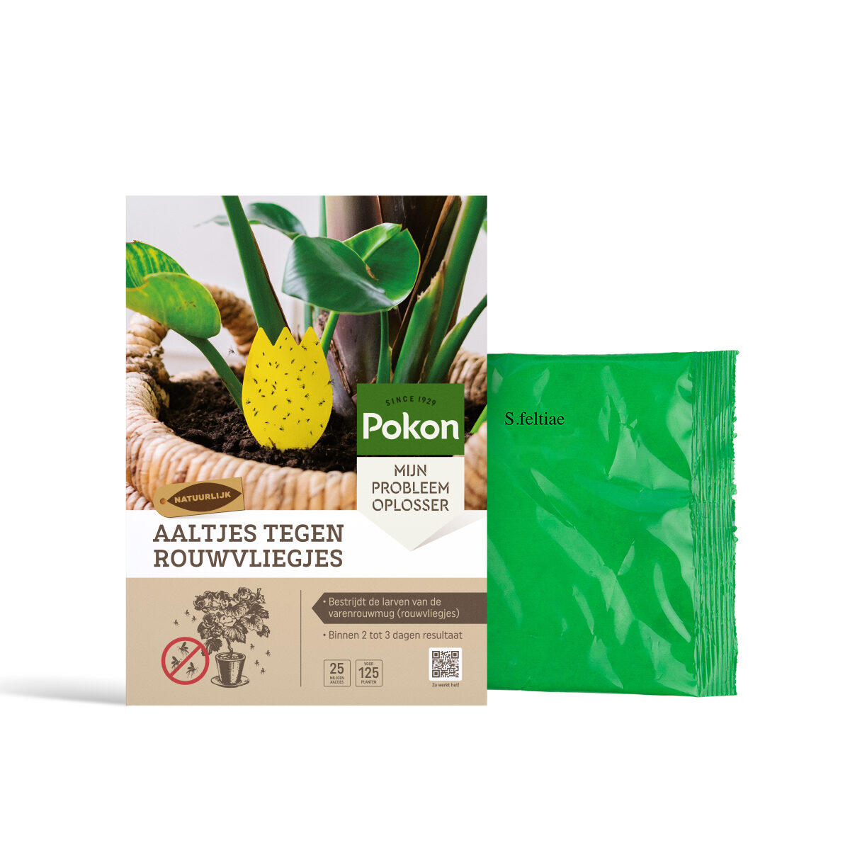 Pokon Aaltjes Tegen Rouwvliegjes bestaat voor 86% uit de aaltjes Steinernema feltiae – 14% inert biologisch afbreekbaar dragermateriaal. Microplastic vrije formule.
