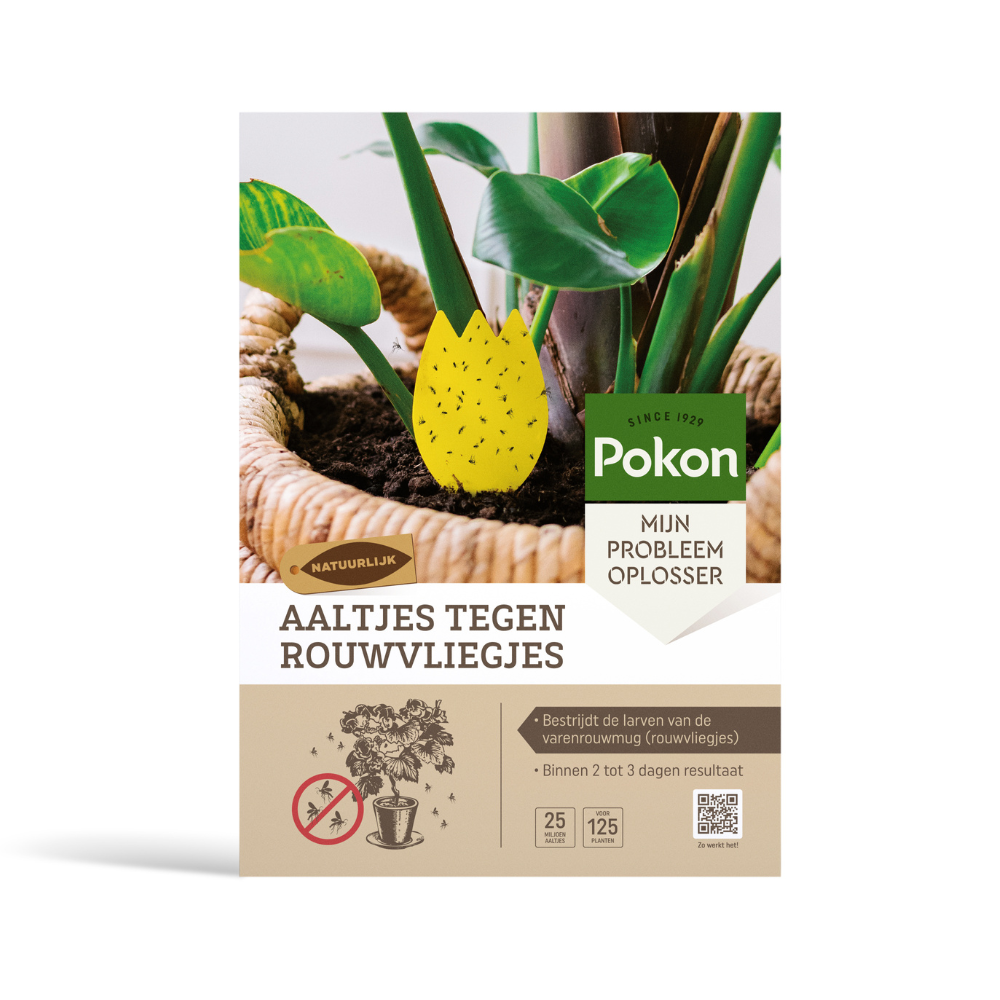 Heb jij last van kleine, zwarte vliegjes rondom je kamerplanten? Dan is de kans groot dat je last hebt van rouwvliegjes. Rouwvliegjes, ook wel varenrouwmuggen of potgrondvliegjes genoemd, zijn kleine zwarte muggen van ongeveer 2 tot 3 mm groot. Volwassen rouwvliegjes kunnen schimmels en virussen overdragen. De larven knabbelen aan de wortels van je plant, waardoor je plant verzwakt. Met Pokon Aaltjes Tegen Rouwvliegjes kan je deze kleine vliegjes effectief bestrijden op een natuurlijke manier.