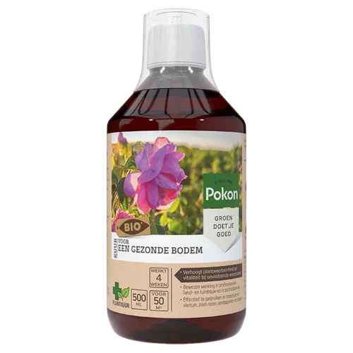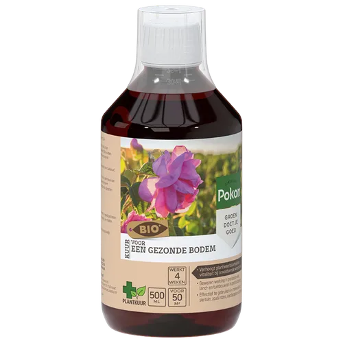 Gebruik Pokon Bio Kuur Voor een Gezonde Bodem Concentraat iedere 4 weken, naast je reguliere planten- en moestuinvoeding.