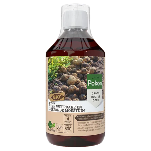Pokon Bio Kuur Voor Weerbare en Gezonde Moestuin Concentraat verhoogt de plantweerbaarheid en vitaliteit bij onvoldoende weerstand. Het is te gebruiken op alle planten van de nachtschadefamilie. Daarnaast kan je de kuur ook gebruiken op tomaten, paprika en aubergine in pot of moestuin.