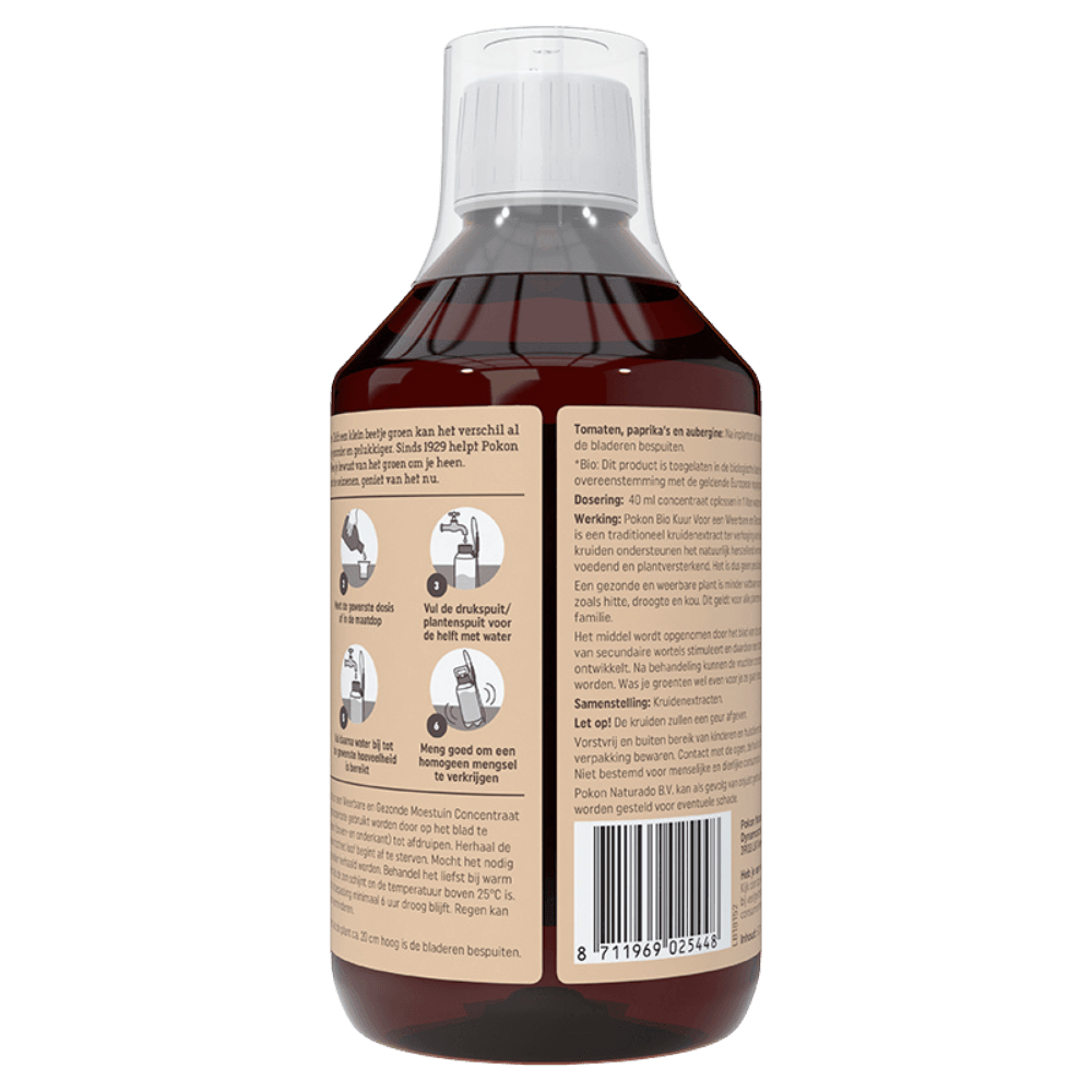 Wil je goed voor je (moestuin)planten zorgen en de plantweerbaarheid verhogen? Gebruik voor extra weerstand Pokon Bio Kuur Voor Weerbare en Gezonde Moestuin Concentraat. De kruidenextracten ondersteunen het natuurlijk herstellend vermogen, werken verzorgend, voedend en plantversterkend. Een gezonde en weerbare plant is minder vatbaar voor invloeden van buitenaf, zoals hitte, droogte en kou.