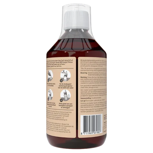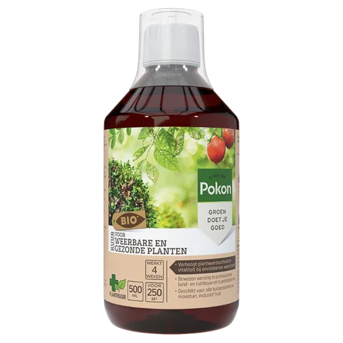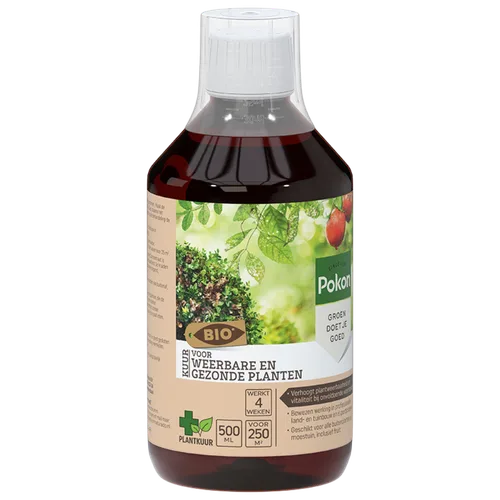 De kruidenextracten in deze plantkuur ondersteunen het natuurlijk herstellend vermogen, werken verzorgend, voedend en plantversterkend. Een gezonde en weerbare plant is minder vatbaar voor invloeden van buitenaf, zoals hitte, droogte en kou. Pokon Bio Kuur Voor Weerbare en Gezonde Planten Concentraat kan op 2 manieren toegepast worden: via het blad of via de bodem. Het middel stimuleert de aanmaak van nieuwe wortels waardoor de plant een sterker afweersysteem ontwikkelt. Het product heeft een bewezen werking in de professionele land- en tuinbouw en is pesticidenvrij.