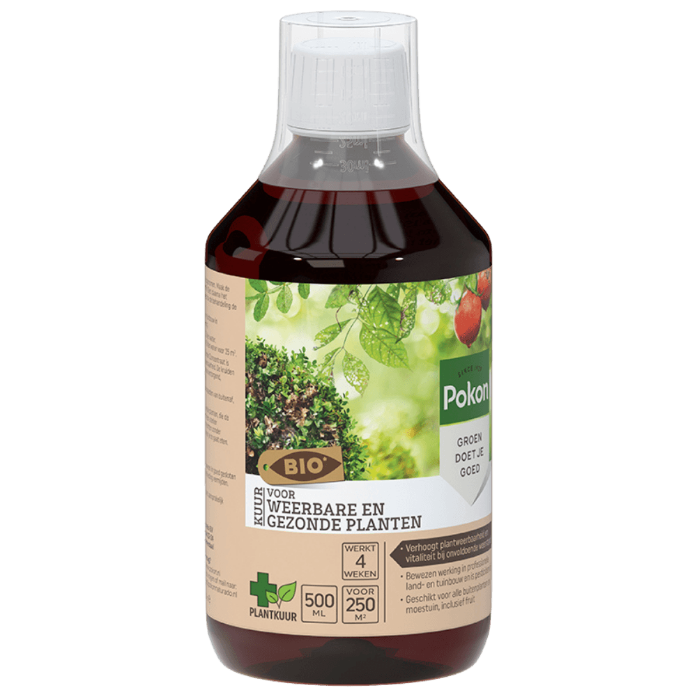 Hebben jouw planten last van invloeden van buitenaf waardoor ze zwakker en niet vitaal zijn? Pokon Bio Kuur Voor Weerbare en Gezonde Planten Concentraat verhoogt de plantweerbaarheid en vitaliteit bij onvoldoende weerstand en invloeden van buitenaf zoals hitte, droogte en kou. Het concentraat is geschikt voor alle buitenplanten, zoals moestuinplanten en fruitbomen.
