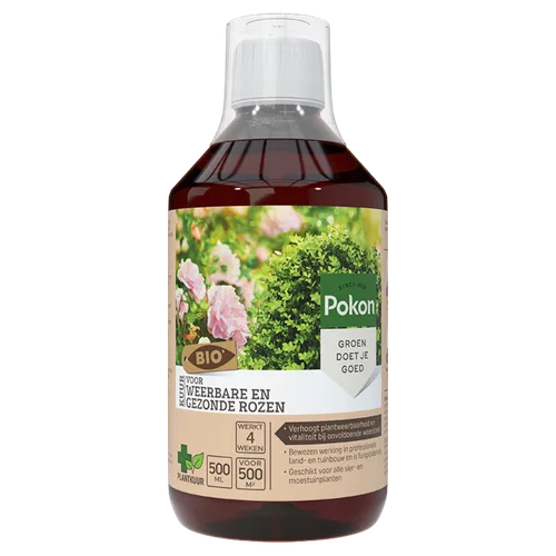 Wil je goed voor je sier- en moestuinplanten zorgen en ze gezond en weerbaar houden? Gebruik voor extra weerstand Pokon Bio Kuur Voor Weerbare en Gezonde Rozen Concentraat. De kruidenextracten ondersteunen het natuurlijk herstellend vermogen, werken verzorgend, voedend en plantversterkend. Een gezonde en weerbare plant is minder vatbaar voor invloeden van buitenaf, zoals hitte, droogte en kou. Door het verhogen van de weerbaarheid zal de plant een sterker afweersysteem ontwikkelen. Het heeft een bewezen werking in de professionele land- en tuinbouw en is fungicidenvrij.