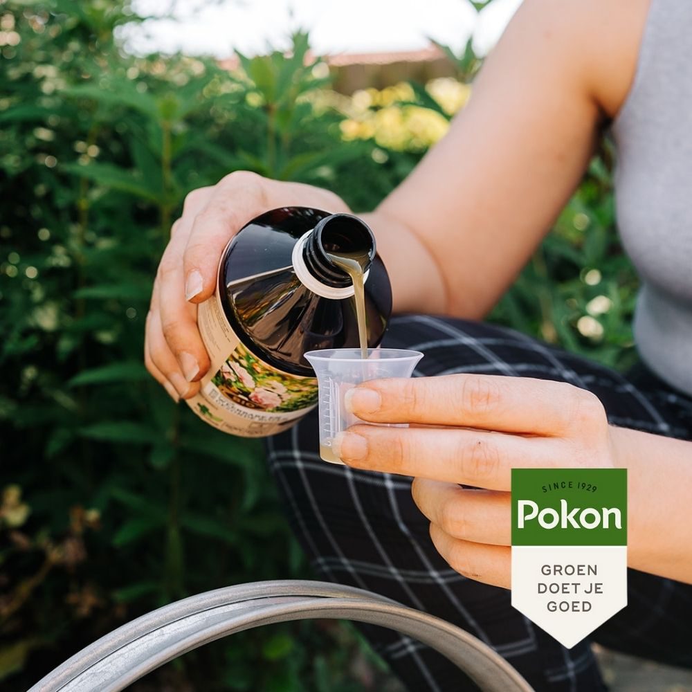 Gebruik Pokon Bio Kuur Voor Weerbare en Gezonde Rozen Concentraat iedere 4 weken, naast je reguliere plantenvoeding.