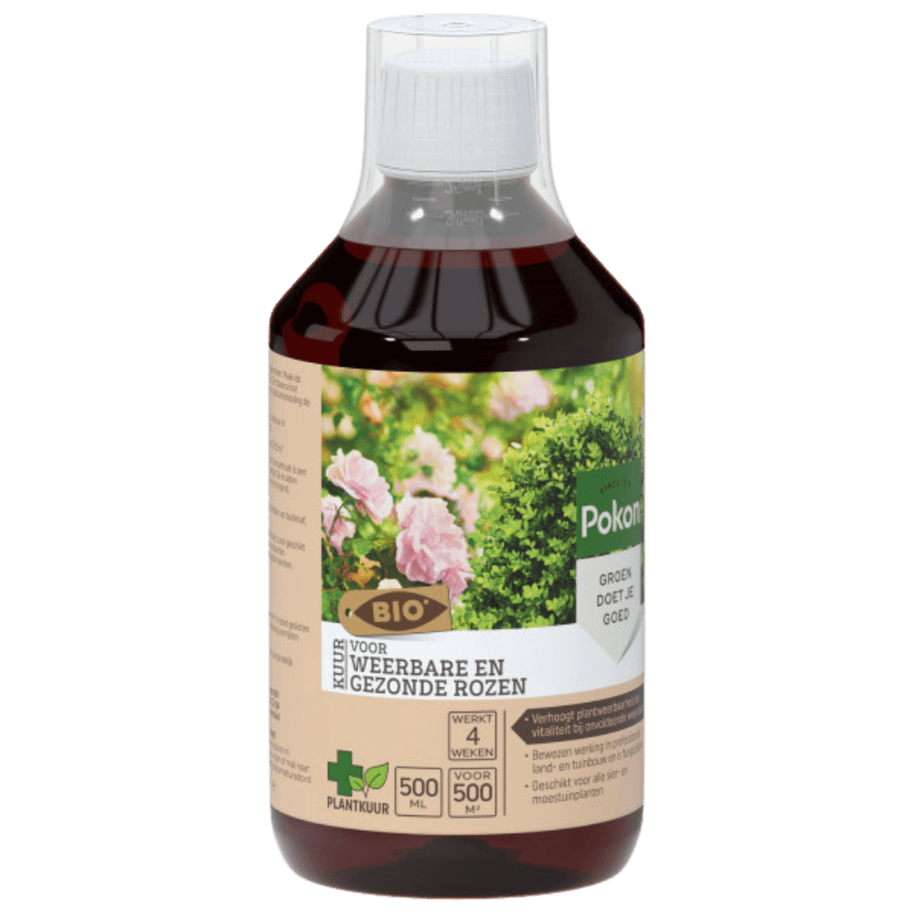 Wil je goed voor je sier- en moestuinplanten zorgen en ze gezond en weerbaar houden? Gebruik voor extra weerstand Pokon Bio Kuur Voor Weerbare en Gezonde Rozen Concentraat. De kruidenextracten ondersteunen het natuurlijk herstellend vermogen, werken verzorgend, voedend en plantversterkend. Een gezonde en weerbare plant is minder vatbaar voor invloeden van buitenaf, zoals hitte, droogte en kou. Door het verhogen van de weerbaarheid zal de plant een sterker afweersysteem ontwikkelen. Het heeft een bewezen werking in de professionele land- en tuinbouw en is fungicidenvrij.