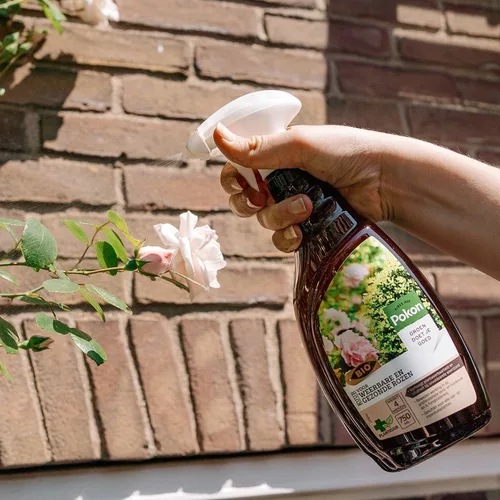 Gebruik Pokon Bio Kuur Voor Weerbare en Gezonde Rozen Concentraat iedere 4 weken, naast je reguliere plantenvoeding.