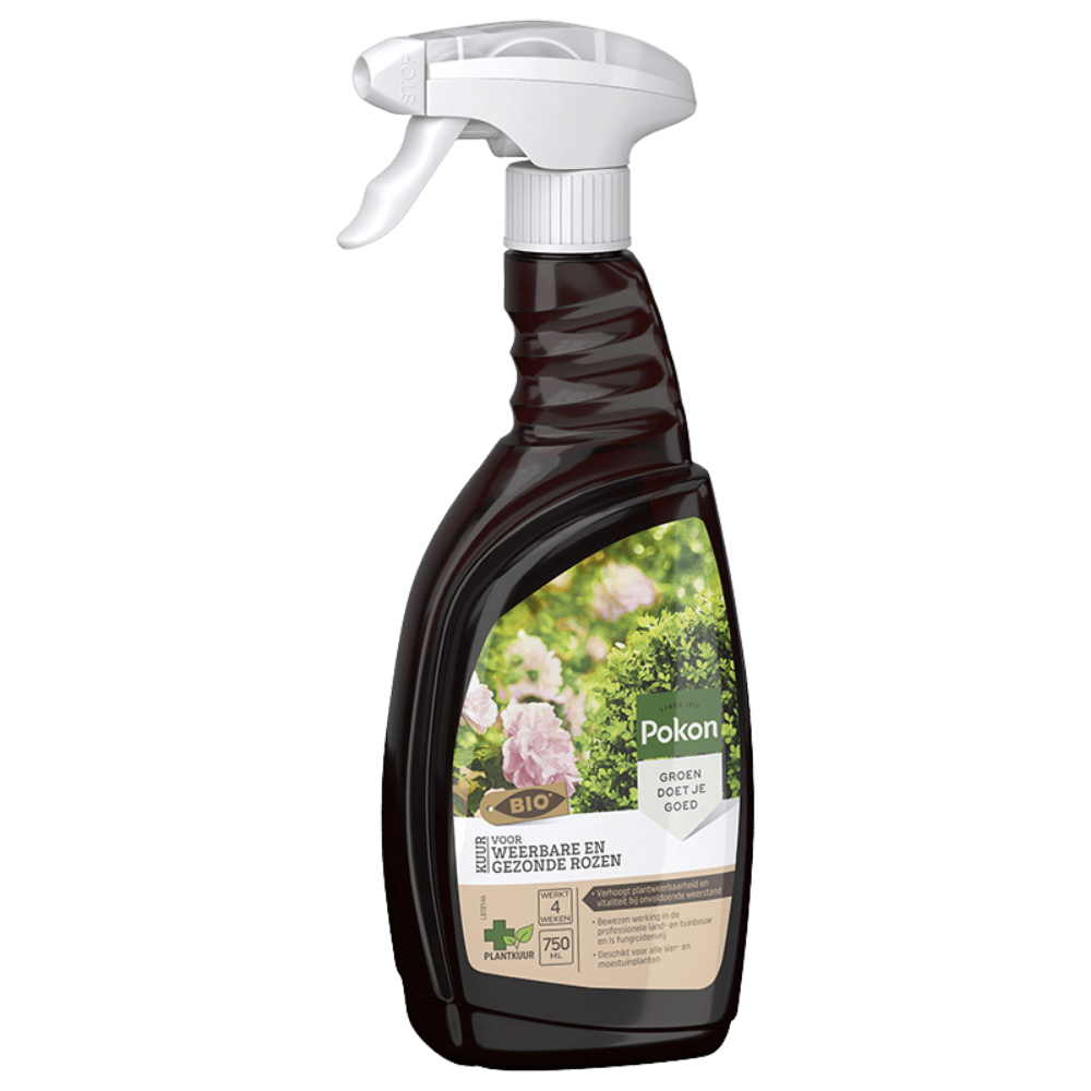 Wil je goed voor je sier- en moestuinplanten zorgen en ze gezond en weerbaar houden? Pokon Bio Kuur Voor Weerbare en Gezonde Rozen Spray is een biostimulant ter verhoging van de weerbaarheid. De kruidenextracten in deze plantkuur ondersteunen het natuurlijk herstellend vermogen, werken verzorgend, voedend en plantversterkend. Een gezonde en weerbare plant is minder vatbaar voor invloeden van buitenaf, zoals hitte, droogte en kou. Door het verhogen van de weerbaarheid zal de plant een sterker afweersysteem ontwikkelen. Het heeft een bewezen werking in de professionele land- en tuinbouw en is fungicidenvrij.
