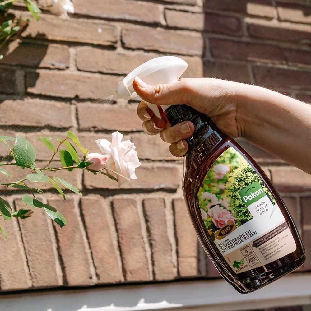 Gebruik Pokon Bio Kuur Voor Weerbare en Gezonde Rozen Concentraat iedere 4 weken, naast je reguliere plantenvoeding.
