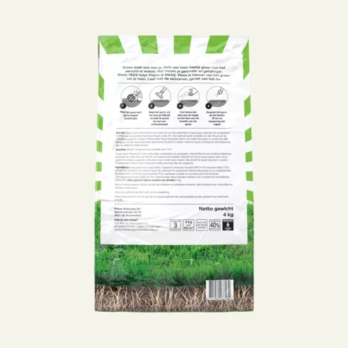 In één handige zak zit alles wat je nodig hebt: meststoffen, graszaad én een bodemverbeteraar. Geen gedoe meer met losse producten. Je strooit het uit, en klaar! Super makkelijk.