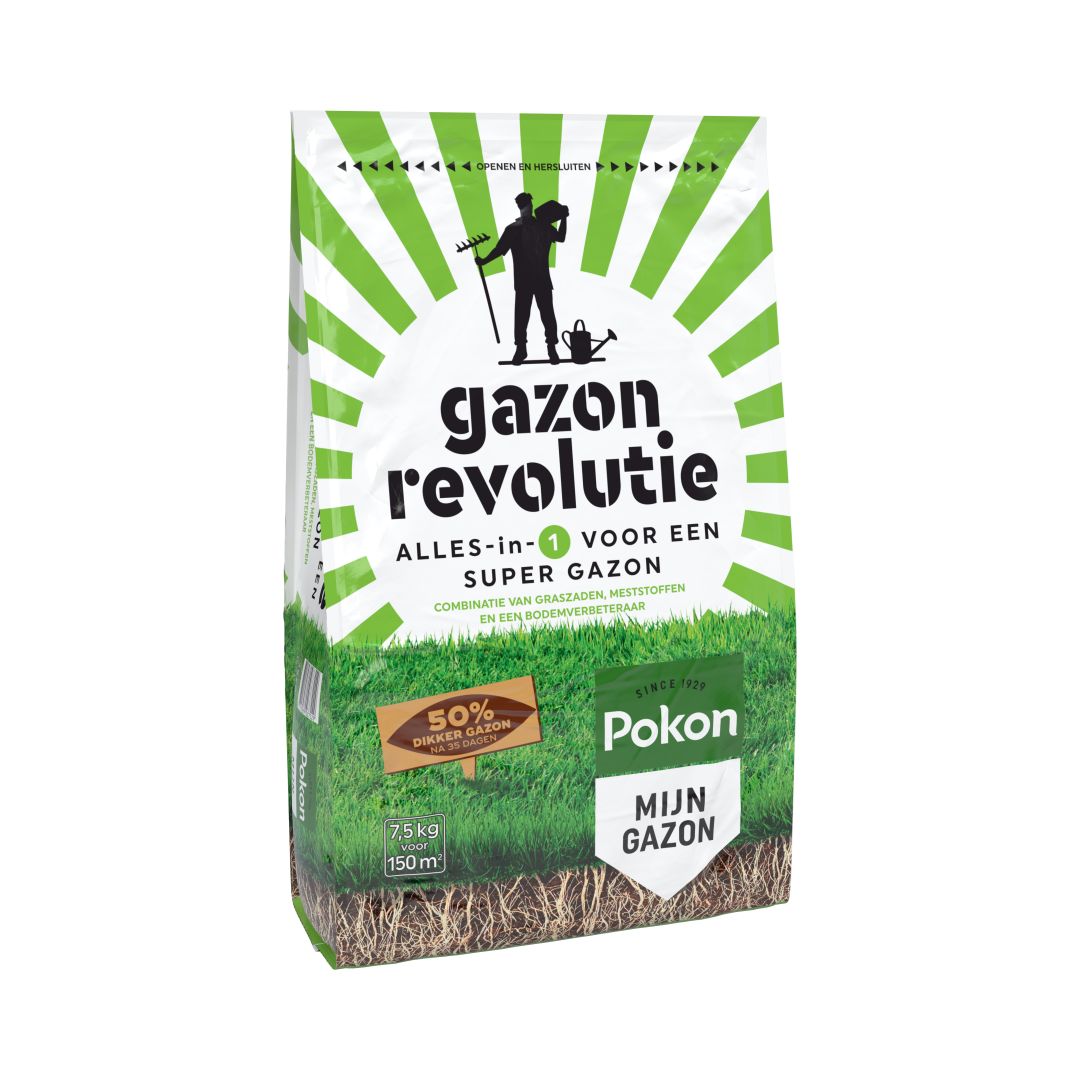 Droom je van een sterk, vol en diepgroen gazon? Met Pokon Gazon Revolutie geef je je gras een echte boost. Al na 1 maand zie je resultaat: je gazon wordt tot wel 50% voller!