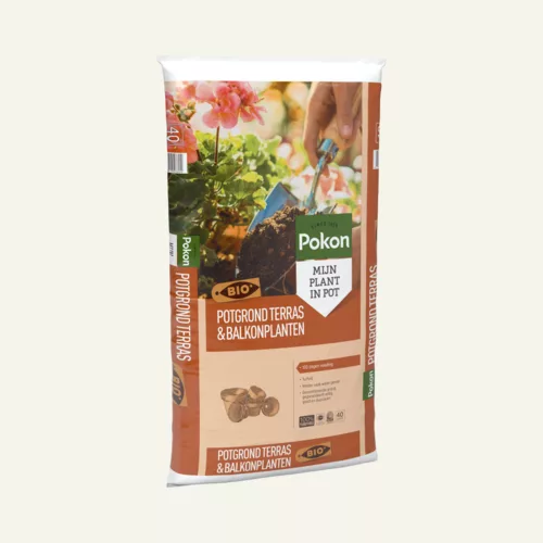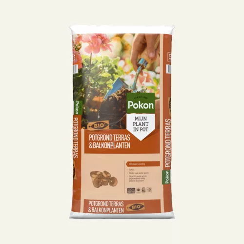 In de grond zitten voedingsstoffen die door de plant worden opgenomen. Na verloop van tijd raken deze voedingsstoffen op. Aan Pokon Bio Terras & Balkon Planten Potgrond is voeding toegevoegd. Het is belangrijk om planten hierna regelmatig bij te voeden met een goede meststof of vloeibare plantenvoeding van Pokon.