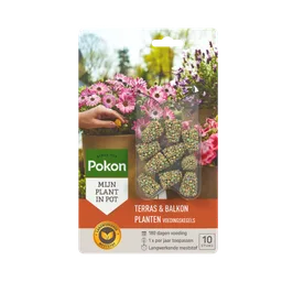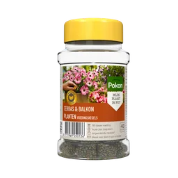 De meststof met NPK 18-6-12 reageert op vocht en temperatuur en geeft geleidelijk voeding af. Na een half jaar is bijvoeden aanbevolen voor blijvende groei en bloei.