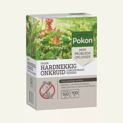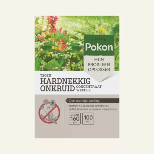 Heb jij last van hardnekkig onkruid in je tuin? Pokon Tegen Hardnekkig Onkruid Weedex heeft een bladsystemische werking en bestrijdt o.a. zevenblad, brandnetels, distels, Japanse duizendknoop en heermoes. Daarnaast werkt het ook op houtachtige planten zoals bramen en struikgewassen. De onkruiden moeten voldoende bladmassa hebben om bestreden te kunnen worden. Dit product mag alleen op onverharde terreinen gebruikt worden