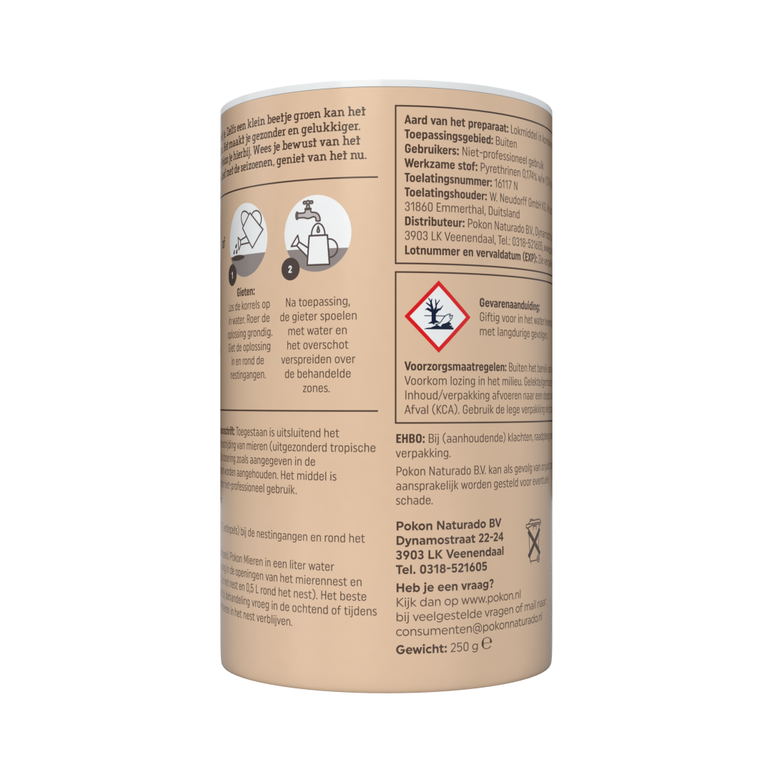 Heb je last van mieren in de tuin of mieren op je terras? Dat kan vervelend zijn. Pokon Tegen Mieren Korrels bestrijdt effectief mieren rondom je huis. Pokon Tegen Mieren Korrels kan als strooi- en gietmiddel gebruikt worden. Bij het gieten van de oplossing kan het middel direct de nestingangen bereiken. Werkt ook tegen mieren in het gazon.
