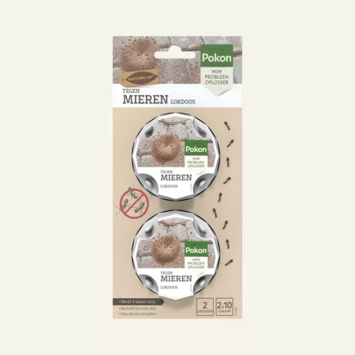 Pokon Tegen Mieren Lokdoos helpt je om mieren en hun nesten in en rondom je huis te bestrijden. De mieren worden aangetrokken door een suikerachtige gel in de lokdoos. Deze gel wordt door de werksters meegenomen naar het nest, waar de mierenkolonie ermee wordt gevoed. Na het eten van de gel sterven de meeste mieren in het nest.