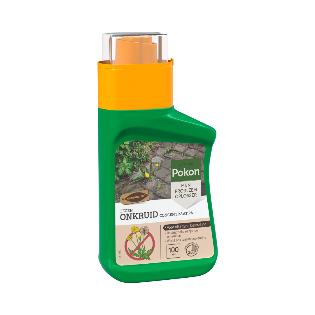 De eerste resultaten van Pokon Tegen Onkruid Concentraat zijn vaak al binnen een uur zichtbaar. Toch kan het bij sommige soorten onkruid wat langer duren voordat het gewenste effect optreedt. Dit hangt onder andere af van het type onkruid en de weersomstandigheden. Voor een optimale werking: - Gebruik de spray op een droge, windstille dag. - De temperatuur moet idealiter tussen de 12 en 25 °C liggen. - Vermijd regen binnen 6 uur na toepassing, want dit vermindert de effectiviteit. Is het onkruid na 14 dagen nog niet verdwenen? Dan kun je de behandeling herhalen. Let op: maximaal 4 toepassingen per jaar. Blijft het onkruid hardnekkig aanwezig? Dan kun je overstappen op een krachtiger middel zoals Pokon Tegen Hardnekkig Onkruid Concentraat. Dit concentraat is geschikt voor onverharde ondergronden en moet verdund worden volgens de instructies op de verpakking. Behandel bij voorkeur in de ochtend of avond en vermijd fel zonlicht. Wil je liever geen bestrijdingsmiddelen gebruiken? Dan blijft handmatig verwijderen of het gebruik van bodembedekkers zoals cacaodoppen of houtsnippers een goed alternatief. Deze natuurlijke methoden helpen ook om nieuwe onkruidgroei te voorkomen