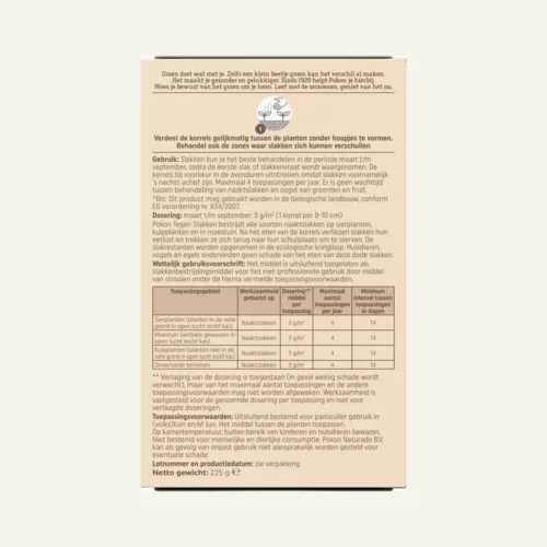 Mits goed bewaard zijn Pokon Bio Tegen Slakken Korrels onbeperkt houdbaar.
