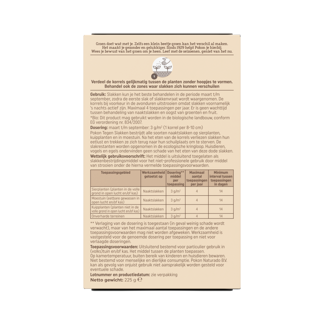 Pokon Bio Tegen Slakken Korrels zijn enkel werkzaam tegen naaktslakken. Over het algemeen richten naaktslakken in de tuin meer schade aan dan de huisjesslak. De huisjesslak leeft namelijk meer op dood organisch materiaal.