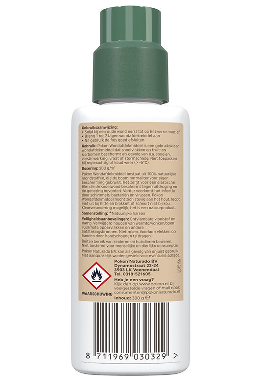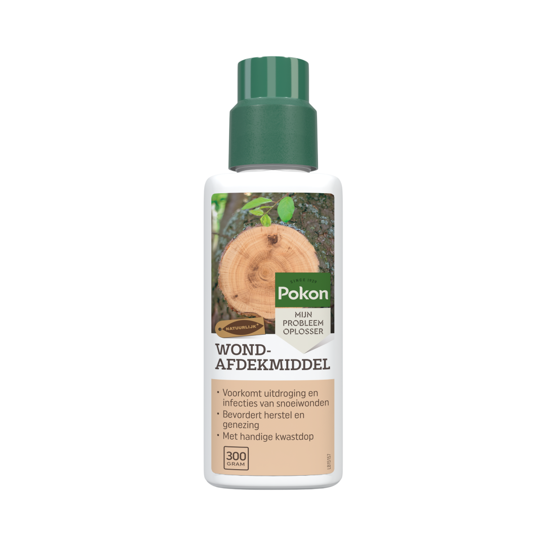 Heb je je fruit- en/of sierbomen gesnoeid? Pokon Wondafdekmiddel droogt op als een elastische film die de snoeiwond beschermt tegen uitdroging en de genezing bevordert. Het middel voorkomt infecties door schimmels, bacteriën en virussen. Pokon Wondafdekmiddel hecht zich stevig aan het hout, loopt niet uit bij hitte en brokkelt of scheurt niet bij kou. Kleurverandering mogelijk, het is een natuurproduct.
