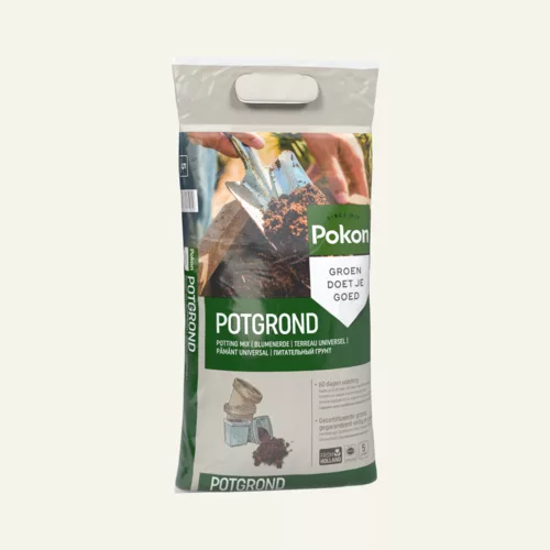 Pokon Potgrond 5L is een goede voedingsbodem voor alle planten. De potgrond bevat uitsluitend hoogwaardige grondstoffen, zoals turfstrooisel, tuinturf, kalk en meststoffen.